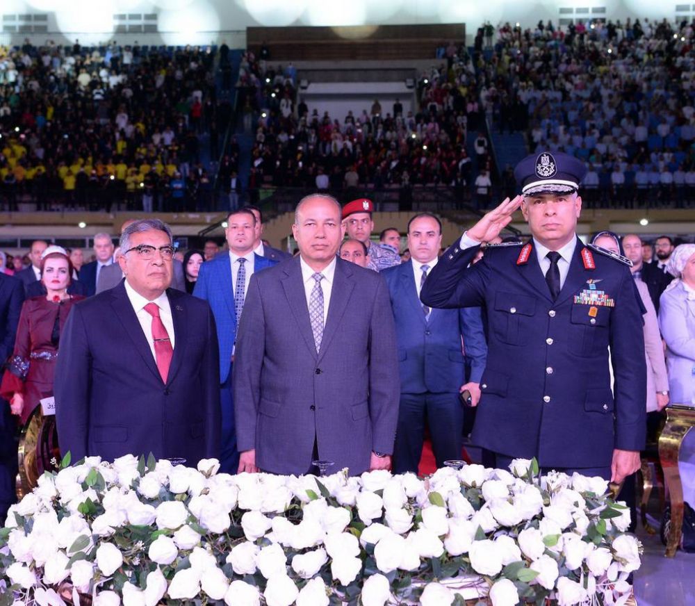 It is worth noting that the ceremony was organized under the supervision of Dr. Mohamed Attia El-Bayoumi, Vice President for Education and Student Affairs, with the participation of the organizing committee that included Dr. Mohamed Sabry Saraya, Coordinator of Student Activities at the University, Dr. Shaima Abdel Wahab, Dr. Mariam Wissa, Maestro Dr. Amr Morsi, Dr. Diaa El-Din Mohamed of the University Choir, Colonel Mohamed Abdel Bary, Director of the Military Education Department, and Mr. Ahmed El-Ashry, Director General of Student Welfare, with the participation of all the activities departments at the university and within the faculties.