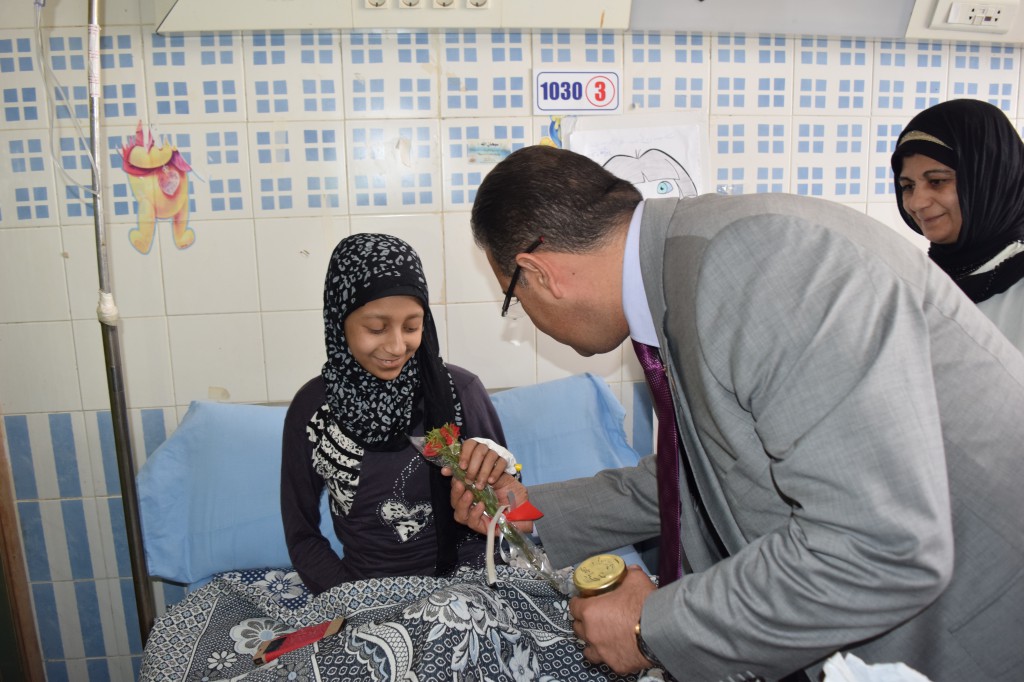 رئيس جامعة المنصورة يزور الأطفال بمركز الأورام