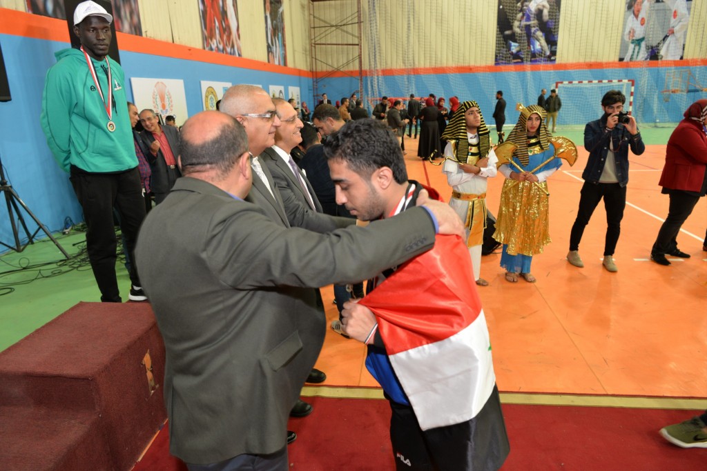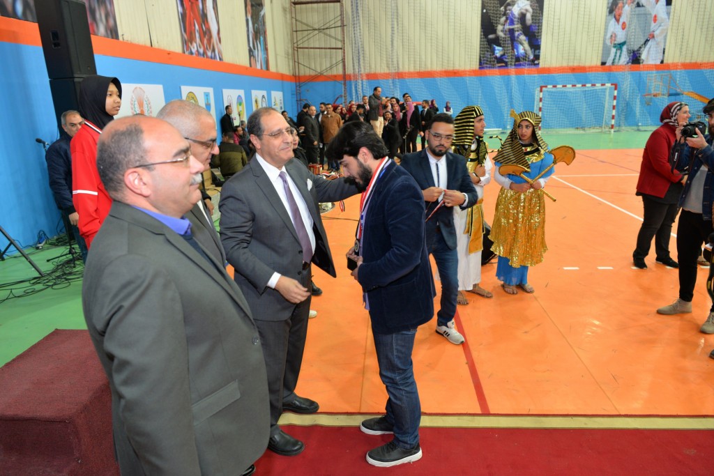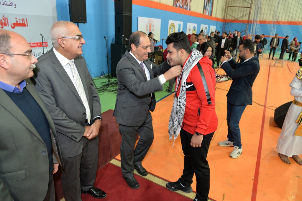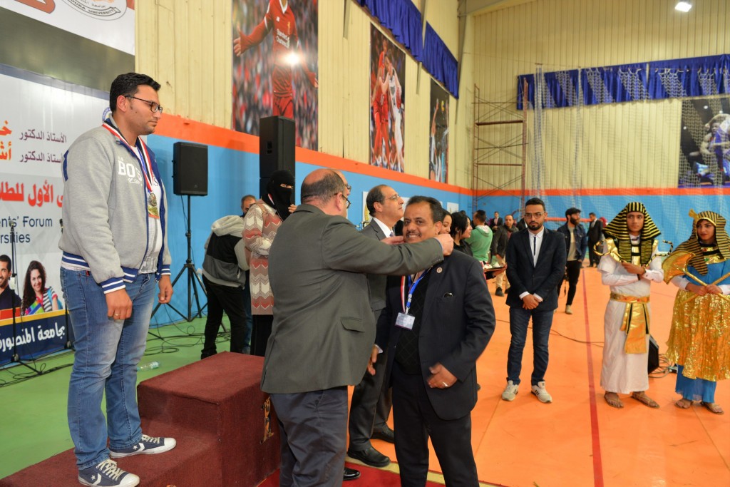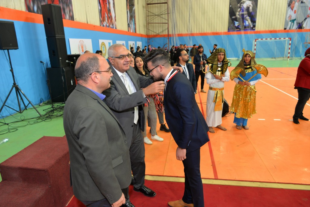 كما كرم الأستاذ الدكتور/ أشرف عبد الباسط، الأستاذ الدكتور/ محمود المليجى، الفائزين بالمراكز الأولى فى المنافسات المختلفة (كرة القدم، الكرة الطائرة (طلاب، طالبات)، السباحة، تنس الطاولة (بنين، بنات)، كرة السلة، ماراثون الدراجات (بنين، بنات)، الشطرنج (بنات)، الفنون التشكيلية (الرسم، التصوير، فوتوغرافيا، الأشغال اليدوية،الجرافيك)، الغناء، النشاط الثقافي (مسابقة العباقرة، الشعر الفصحي، القصة القصيرة عربي، المقال)، النشاط العلمي (أبحاث المجال الهندسي، أبحاث مجال العلوم، أبحاث المجال الطبي، أبحاث العلوم الإنسانية، مشاريع هندسية وإبتكارات، أبحاث الفرق الطبية لطلاب مرحلة البكالوريوس)، مسابقات التلى ماتش ( فردى، جماعى))
