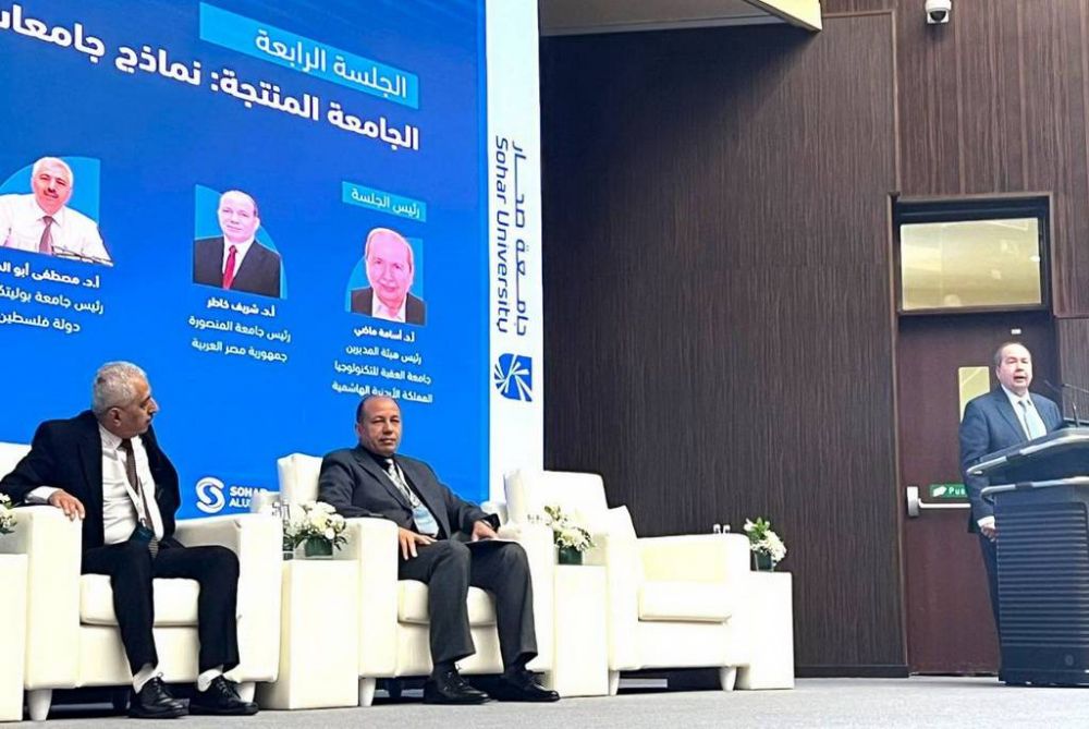وأشار إلى أن التحول نحو الجامعة المنتجة يمثل استثمارًا في المستقبل وبوابة حقيقية لتكامل التعليم مع الاقتصاد الوطني، موضحًا أن الجامعة تعمل على تحويل الأبحاث العلمية إلى منتجات وخدمات قابلة للتطبيق التجاري، من خلال دعم حاضنات الأعمال، وتبنّي التمويل الذكي والمستدام، وإنشاء صندوق استثمار جامعي للمخاطر لتمويل الشركات الناشئة الناتجة عن الأبحاث الجامعية، مع تنويع مصادر رأس المال بين التمويل الحكومي والقطاع الخاص ورجال الأعمال.