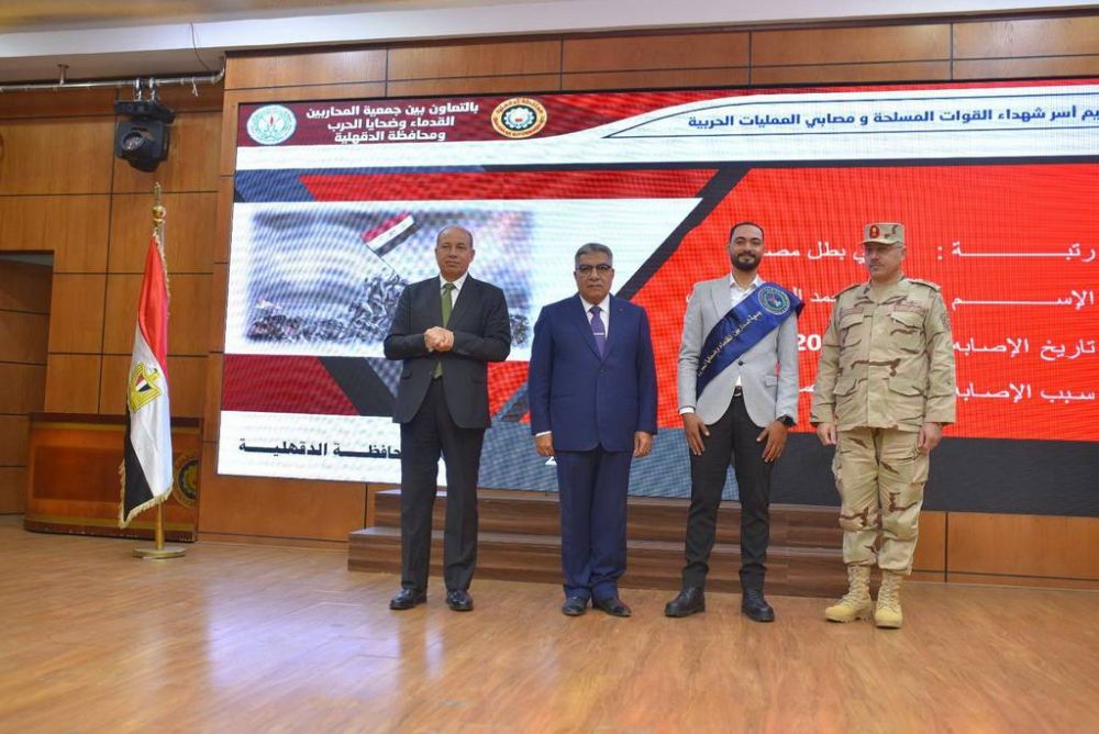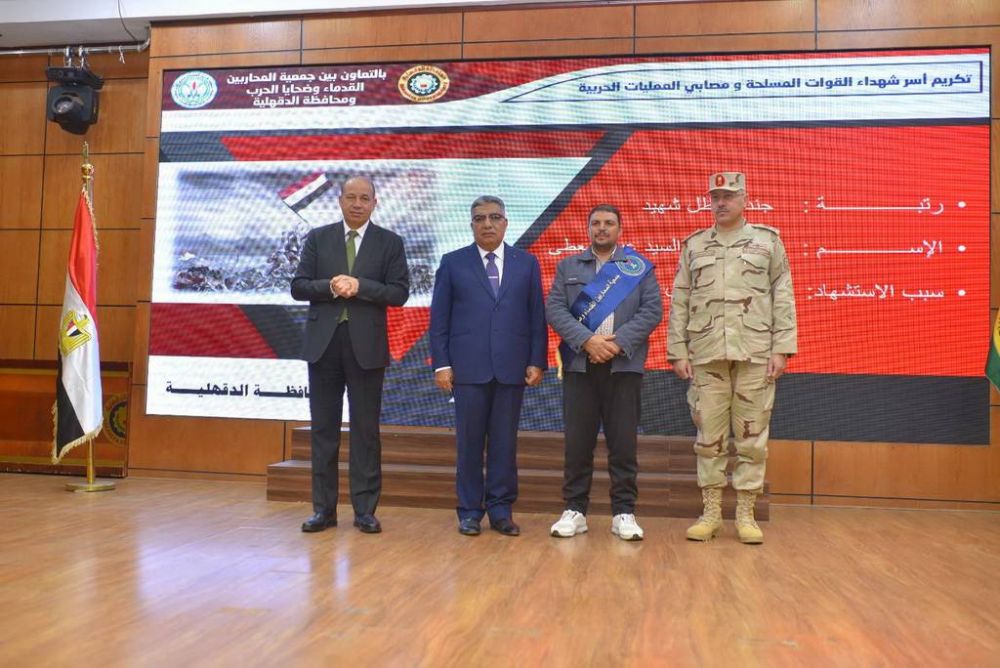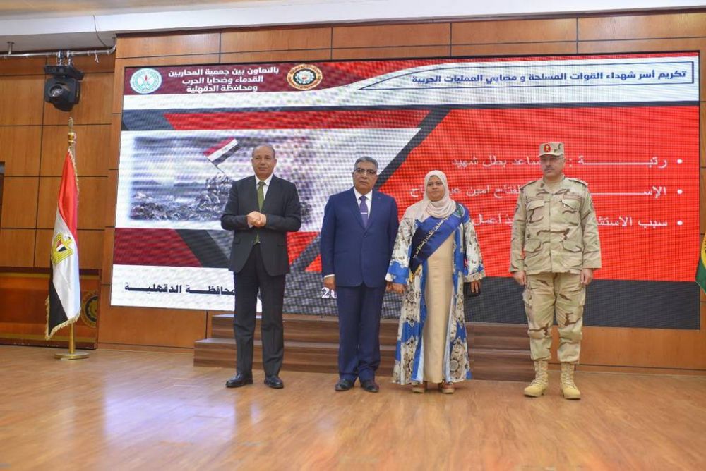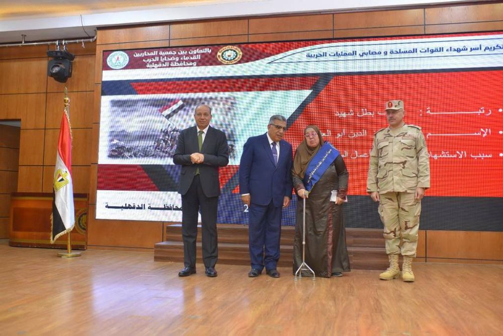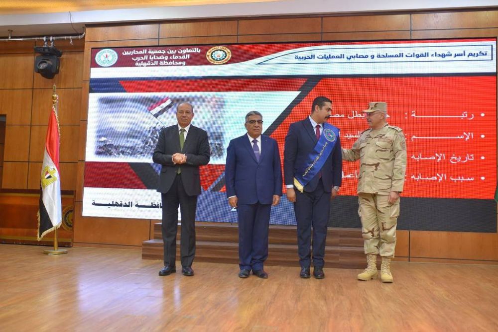 ومن جانبه، أعرب اللواء أحمد حسن أبو شرق، مدير جمعية المحاربين القدامى ومصابي العمليات الحربية، عن تقديره للتعاون المثمر مع محافظة الدقهلية، ناقلًا تحيات الفريق أول عبد المجيد صقر، القائد العام للقوات المسلحة، والفريق أحمد خليفة، رئيس أركان حرب القوات المسلحة. وأكد أن الجمعية تحرص على تنظيم فعاليات تُشعر أسر الشهداء بأن تضحيات ذويهم خالدة في وجدان الوطن.