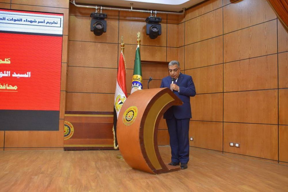 رئيس جامعة المنصورة يشارك في حفل تكريم أسر الشهداء ومصابي العمليات الحربية بحضور محافظ الدقهلية