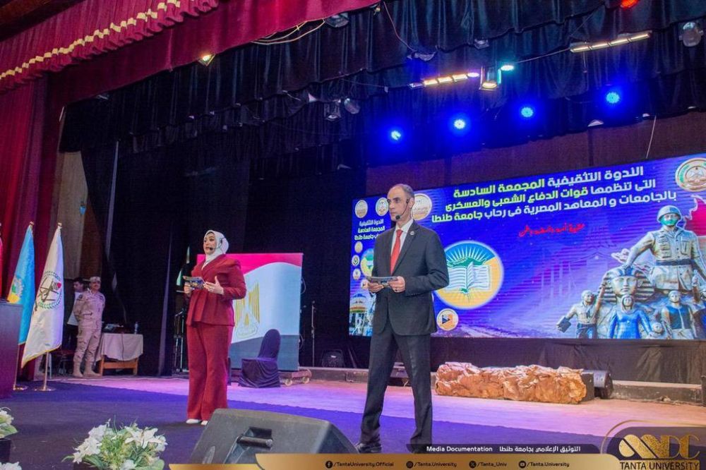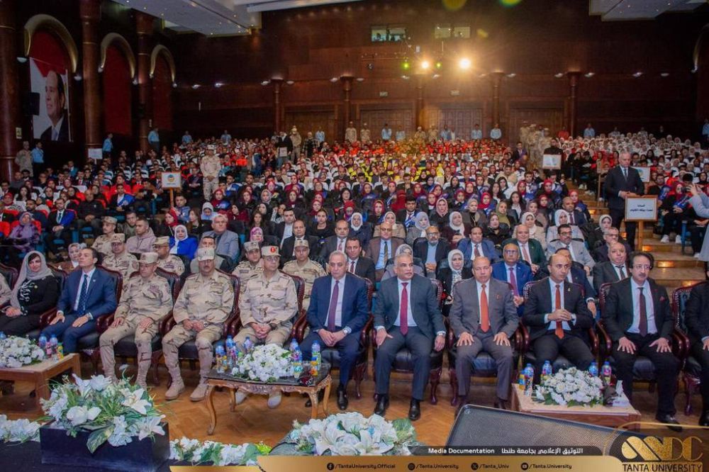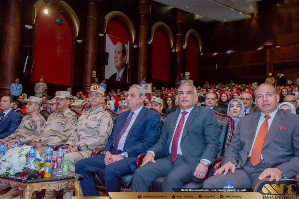 وفي ختام فعاليات الندوة، جرى تكريم أسر الشهداء، والطلاب من ذوي الهمم، والطلاب المتميزين، وقام اللواء أركان حرب هشام حسني حسن، قائد قوات الدفاع الشعبي والعسكري، والدكتور محمد حسين، رئيس جامعة طنطا، بتبادل الدروع التذكارية.